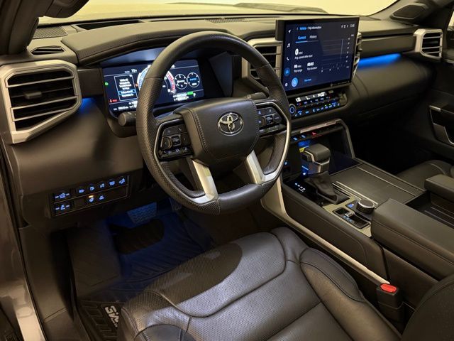 Visually, the Tundra Hybrid Platinum commands attention with its Magnetic Gray Metallic exterior, accentuated by premium features such as Automatic High-Beam Headlights, Front Fog Lights, and Power-Folding, Heated, Auto-Dimming Side Mirrors. The stunning 20-inch Dark-Painted Alloy Wheels further enhance the vehicle's bold and sophisticated presence.
