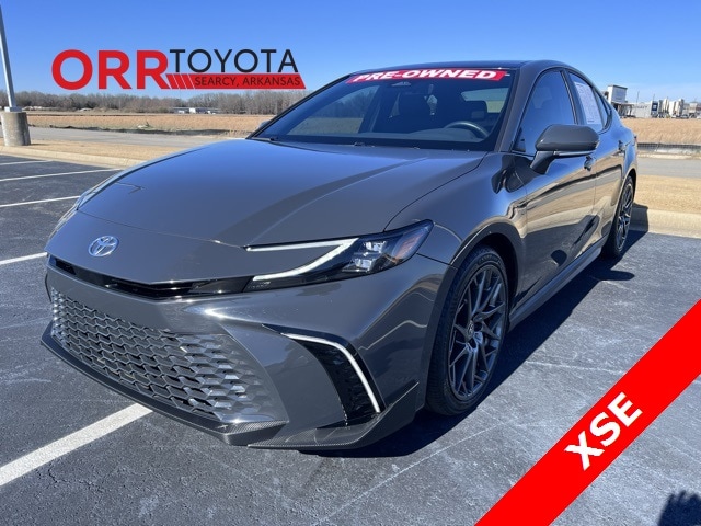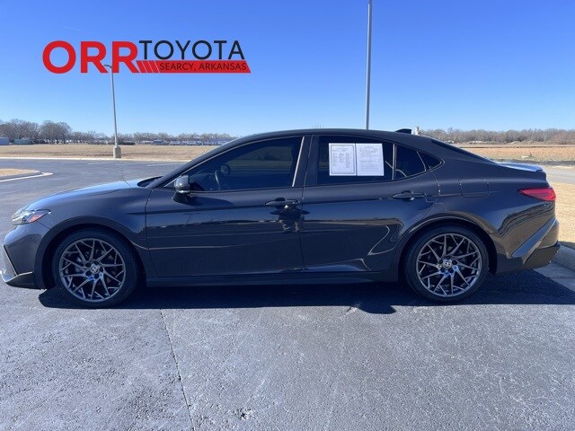 Underground 2025 Toyota Camry XSE FWD eCVT 2.5L 4-Cylinder 16V DOHC This Camry XSE is nicely equipped with 2.5L 4-Cylinder 16V DOHC, Black w/Leather/Dinamica Microfiber Seat Trim, 4-Wheel Disc Brakes, 6 Speakers, ABS brakes, Air Conditioning, Alloy wheels, AM/FM radio: SiriusXM, Apple CarPlay/Android Auto, Auto High-beam Headlights, Auto-dimming Rear-View mirror, Automatic temperature control, Brake assist, Bumpers: body-color, Delay-off headlights, Driver door bin, Driver vanity mirror, Dual front impact airbags, Dual front side impact airbags, Electronic Stability Control, Emergency communication system: Safety Connect (up to 10-year trial subscription), Exterior Parking Camera Rear, Four wheel independent suspension, Front Accent Lighting (TMS), Front anti-roll bar, Front Bucket Seats, Front Center Armrest, Front dual zone A/C, Front reading lights, Fully automatic headlights, Garage door transmitter: HomeLink, Heated door mirrors, Heated Front Bucket Seats, Heated front seats, Heated steering wheel, Illuminated entry, Knee airbag, Leather Seat Trim, Leather Shift Knob, Leather steering wheel, Low tire pressure warning, Occupant sensing airbag, Outside temperature display, Overhead airbag, Overhead console, Panic alarm, Panoramic Glass Roof, Passenger door bin, Passenger vanity mirror, Power door mirrors, Power driver seat, Power passenger seat, Power steering, Power windows, Radio data system, Radio: Toyota Audio Multimedia w/12.3" Touchscreen, Rear anti-roll bar, Rear reading lights, Rear seat center armrest, Rear side impact airbag, Rear window defroster, Remote keyless entry, Security system, Speed control, Speed-sensing steering, Split folding rear seat, Spoiler, Steering wheel mounted audio controls, Telescoping steering wheel, Tilt steering wheel, Traction control, Trip computer, Turn signal indicator mirrors, Variably intermittent wipers, Wheels: 19" Gray Metallic (TMS) (PPO), and Wheels: 19" Smoke Gray & Black-Finished Alloy. One owner Carfax, Carfax no accidents, Back up camera, Bluetooth, Blind spot monitor, Keyless entry, 2.5L 4-Cylinder 16V DOHC, Black w/Leather/Dinamica Microfiber Seat Trim.