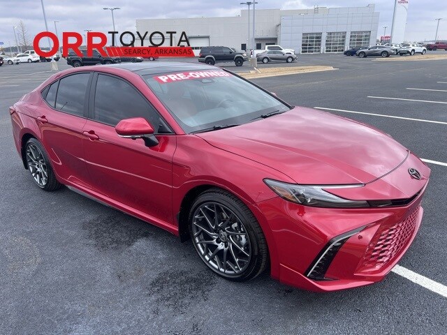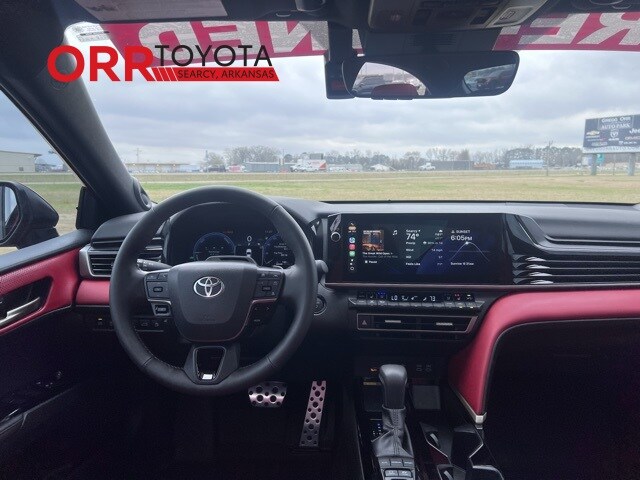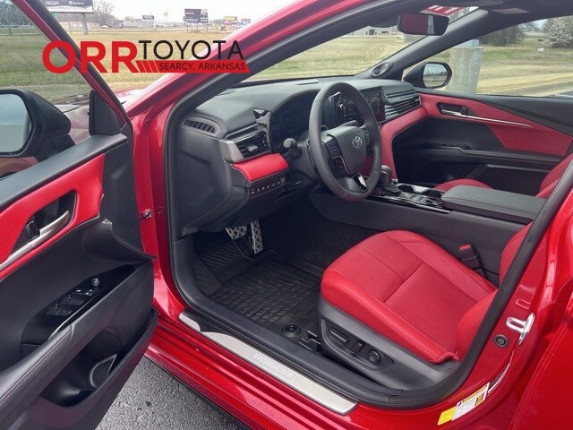 Supersonic Red 2025 Toyota Camry XSE FWD eCVT 2.5L 4-Cylinder 16V DOHC This Camry XSE is nicely equipped with Premium Plus Package (10" Color Head-Up Display, Digital Key Compatibility, Driver Attention Monitor, Front & Rear Parking Assist w/Automatic Braking, Front Cross-Traffic Alert, Lane Change Assist, Panoramic Glass Roof, Panoramic View Monitor, Radio: Toyota Audio Multimedia w/JBL, Rear Cross-Traffic Braking, Traffic Jam Assist, and Ventilated Front Seats), 2.5L 4-Cylinder 16V DOHC, Cockpit Red w/Leather Seat Trim, Black Badge Overlays (TMS), 4-Wheel Disc Brakes, 6 Speakers, ABS brakes, Air Conditioning, Alloy wheels, AM/FM radio: SiriusXM, Apple CarPlay/Android Auto, Auto High-beam Headlights, Auto-dimming Rear-View mirror, Automatic temperature control, Brake assist, Bumpers: body-color, Delay-off headlights, Driver door bin, Driver vanity mirror, Dual front impact airbags, Dual front side impact airbags, Electronic Stability Control, Emergency communication system: Safety Connect (up to 10-year trial subscription), Exterior Parking Camera Rear, Four wheel independent suspension, Front Accent Lighting (TMS), Front anti-roll bar, Front Bucket Seats, Front Center Armrest, Front dual zone A/C, Front reading lights, Fully automatic headlights, Garage door transmitter: HomeLink, Heated door mirrors, Heated Front Bucket Seats, Heated front seats, Heated steering wheel, Illuminated entry, Illuminated Trunk Sill (TMS), Knee airbag, Leather Seat Trim, Leather Shift Knob, Leather steering wheel, Low tire pressure warning, Mudguards (TMS), Occupant sensing airbag, Outside temperature display, Overhead airbag, Overhead console, Panic alarm, Passenger door bin, Passenger vanity mirror, Power door mirrors, Power driver seat, Power passenger seat, Power steering, Power windows, Radio data system, Radio: Toyota Audio Multimedia w/12.3" Touchscreen, Rear anti-roll bar, Rear reading lights, Rear seat center armrest, Rear side impact airbag, Rear window defroster, Remote keyless entry, Security system, Speed control, Speed-sensing steering, Split folding rear seat, Spoiler, Steering wheel mounted audio controls, Telescoping steering wheel, Tilt steering wheel, Traction control, Trip computer, Turn signal indicator mirrors, Variably intermittent wipers, and Wheels: 19" Smoke Gray & Black-Finished Alloy. One owner Carfax, Carfax no accidents, Back up camera, Bluetooth, Heated and cooled seats, Blind spot monitor, Keyless entry, 2.5L 4-Cylinder 16V DOHC, Cockpit Red w/Leather Seat Trim, 10" Color Head-Up Display, Black Badge Overlays (TMS), Digital Key Compatibility, Driver Attention Monitor, Front & Rear Parking Assist w/Automatic Braking, Front Cross-Traffic Alert, Lane Change Assist, Panoramic Glass Roof, Panoramic View Monitor, Premium Plus Package, Radio: Toyota Audio Multimedia w/JBL, Rear Cross-Traffic Braking, Traffic Jam Assist, Ventilated Front Seats.