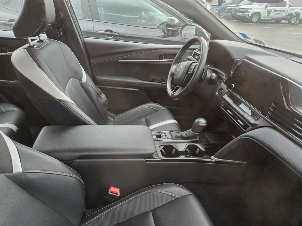 This 2025 Toyota Camry comes equipped with, 2.5L 4-Cylinder 16V DOHC, Black Premium Synthetic, 4-Wheel Disc Brakes, 6 Speakers, ABS brakes, Air Conditioning, Alloy wheels, AM/FM radio: SiriusXM, Apple CarPlay/Android Auto, Auto High-beam Headlights, Automatic temperature control, Brake assist, Bumpers: body-color, Delay-off headlights, Driver door bin, Driver vanity mirror, Dual front impact airbags, Dual front side impact airbags, Electronic Stability Control, Emergency communication system: Safety Connect (up to 10-year trial subscription), Exterior Parking Camera Rear, Four wheel independent suspension, Front anti-roll bar, Front Bucket Seats, Front Center Armrest, Front dual zone A/C, Front reading lights, Fully automatic headlights, Heated door mirrors, Illuminated entry, Knee airbag, Low tire pressure warning, Occupant sensing airbag, Outside temperature display, Overhead airbag, Overhead console, Panic alarm, Passenger door bin, Passenger vanity mirror, Power door mirrors, Power steering, Power windows, Radio data system, Radio: Toyota Audio Multimedia w/8" Touchscreen, Rear anti-roll bar, Rear seat center armrest, Rear side impact airbag, Rear window defroster, Remote keyless entry, Security system, Speed control, Speed-sensing steering, Split folding rear seat, Steering wheel mounted audio controls, Telescoping steering wheel, Tilt steering wheel, Traction control, Trip computer, Turn signal indicator mirrors, Variably intermittent wipers, 2.5L 4-Cylinder 16V DOHC, Black Premium Synthetic.