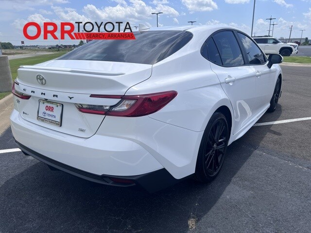 Ice Cap 2025 Toyota Camry SE FWD eCVT 2.5L 4-Cylinder 16V DOHC This Camry SE is nicely equipped with Cold Weather Package (Heated Front Seats and Leather Wrapped Heated Steering Wheel), Convenience Package (Auto-Dimming Rearview Mirror w/HomeLink and Smart Key System), 2.5L 4-Cylinder 16V DOHC, Black Cloth, 4-Wheel Disc Brakes, 6 Speakers, ABS brakes, Air Conditioning, All Weather Floor Protection (TMS), Alloy wheels, AM/FM radio: SiriusXM, Apple CarPlay/Android Auto, Auto High-beam Headlights, Automatic temperature control, Brake assist, Bumpers: body-color, Delay-off headlights, Driver door bin, Driver vanity mirror, Dual front impact airbags, Dual front side impact airbags, Electronic Stability Control, Emergency communication system: Safety Connect (up to 10-year trial subscription), Exterior Parking Camera Rear, Four wheel independent suspension, Front anti-roll bar, Front Bucket Seats, Front Center Armrest, Front dual zone A/C, Front reading lights, Fully automatic headlights, Heated door mirrors, Illuminated entry, Knee airbag, Leather Shift Knob, Leather steering wheel, Low tire pressure warning, Occupant sensing airbag, Outside temperature display, Overhead airbag, Overhead console, Panic alarm, Passenger door bin, Passenger vanity mirror, Power door mirrors, Power driver seat, Power steering, Power windows, Radio data system, Radio: Toyota Audio Multimedia w/12.3" Touchscreen, Radio: Toyota Audio Multimedia w/8" Touchscreen, Rear anti-roll bar, Rear reading lights, Rear seat center armrest, Rear side impact airbag, Rear window defroster, Remote keyless entry, Security system, SofTex & Fabric Seat Trim, Speed control, Speed-sensing steering, Split folding rear seat, Spoiler, Steering wheel mounted audio controls, Telescoping steering wheel, Tilt steering wheel, Traction control, Trip computer, Turn signal indicator mirrors, Variably intermittent wipers, and Wheels: 18" Black-Finished Alloy. Carfax no accidents, Back up camera, Bluetooth, Keyless entry, 2.5L 4-Cylinder 16V DOHC, Black Cloth, Auto-Dimming Rearview Mirror w/HomeLink, Cold Weather Package, Convenience Package, Heated Front Seats, Leather Wrapped Heated Steering Wheel, Smart Key System.