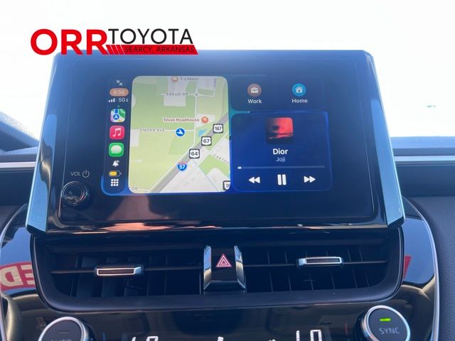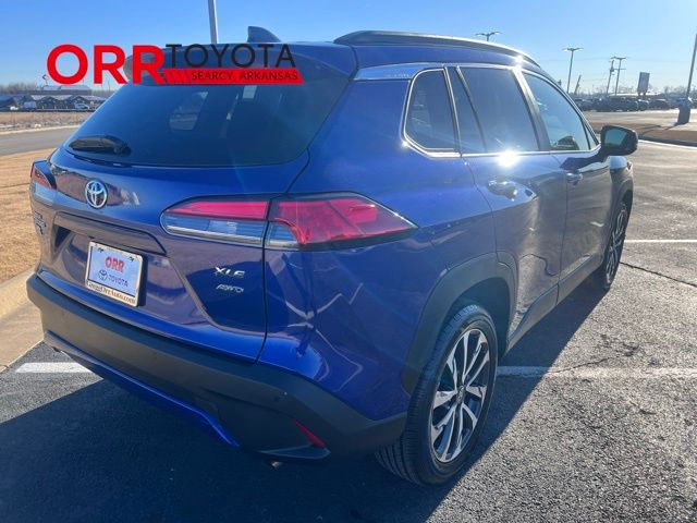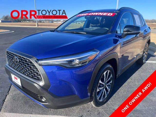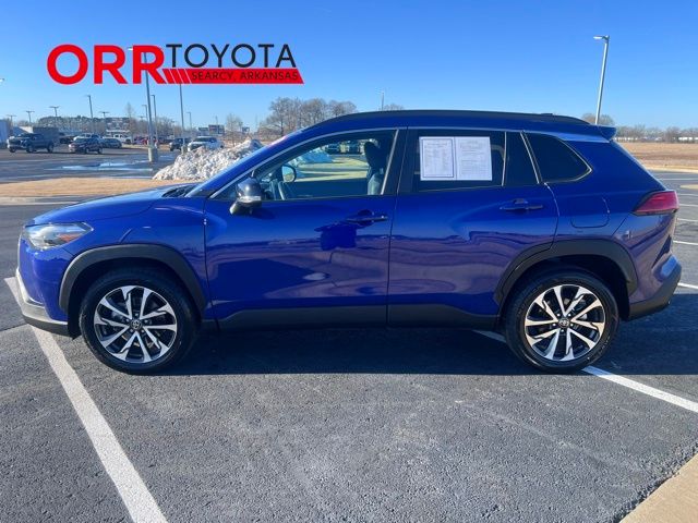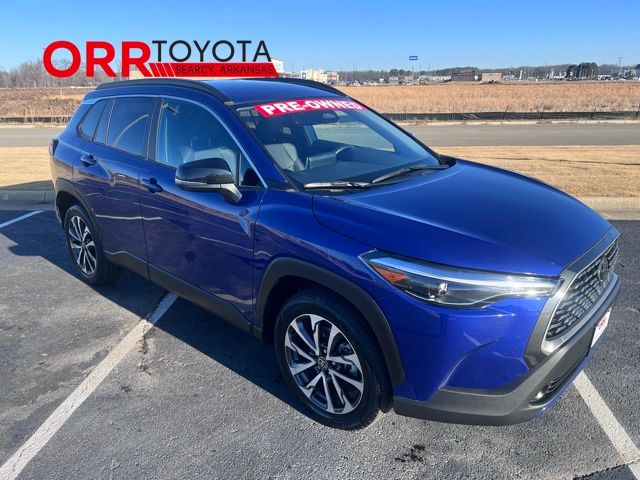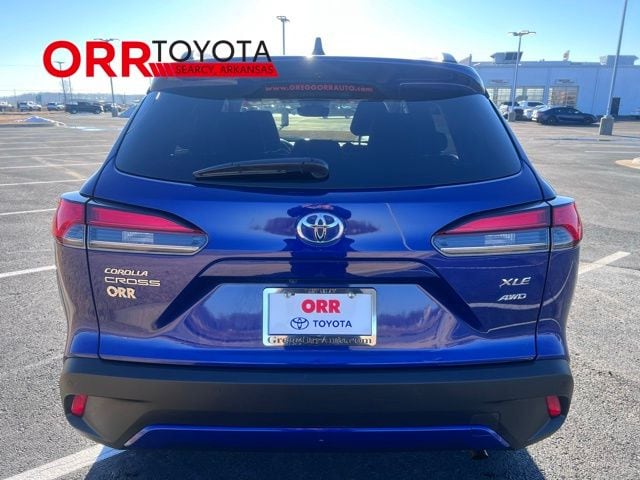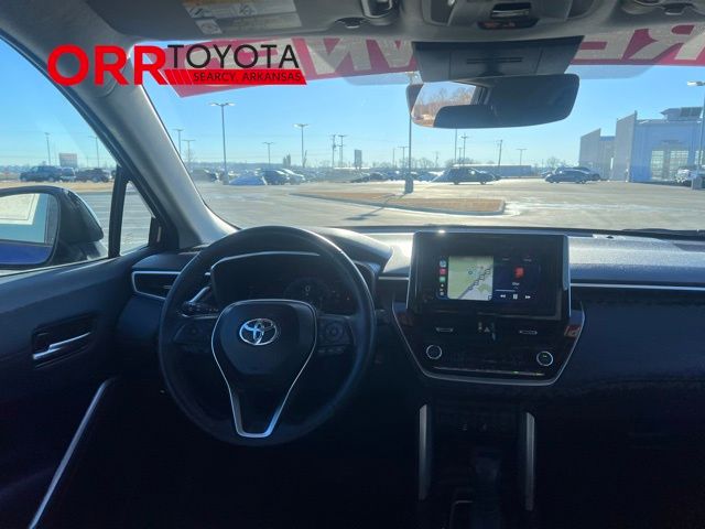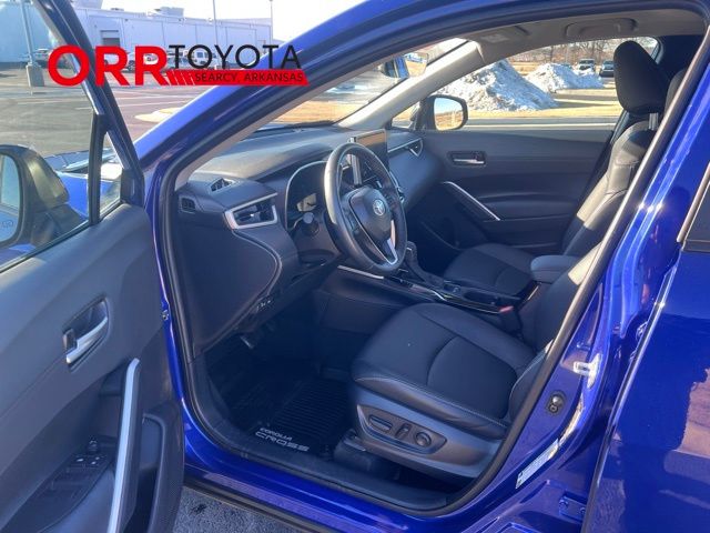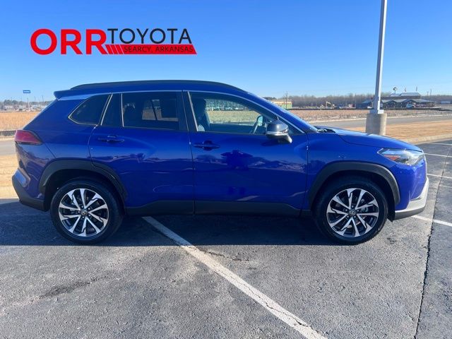 Blue Crush Metallic 2025 Toyota Corolla Cross XLE AWD CVT 2.0L I4 PDI DOHC 16V LEV3-SULEV30 169hp This Corolla Cross XLE is nicely equipped with 4-Wheel Disc Brakes, 6 Speakers, ABS brakes, Air Conditioning, Alloy wheels, AM/FM radio: SiriusXM, Auto High-beam Headlights, Auto-dimming Rear-View mirror, Automatic temperature control, Brake assist, Bumpers: body-color, Delay-off headlights, Driver door bin, Driver vanity mirror, Dual front impact airbags, Dual front side impact airbags, Electronic Stability Control, Emergency communication system: Safety Connect (10-year trial), Exterior Parking Camera Rear, Four wheel independent suspension, Front anti-roll bar, Front Bucket Seats, Front Center Armrest, Front dual zone A/C, Front fog lights, Front reading lights, Fully automatic headlights, Garage door transmitter: HomeLink, Heated door mirrors, Heated Front Bucket Seats, Heated front seats, Illuminated entry, Knee airbag, Leather Shift Knob, Leather steering wheel, Low tire pressure warning, Occupant sensing airbag, Outside temperature display, Overhead airbag, Panic alarm, Passenger door bin, Passenger vanity mirror, Power door mirrors, Power driver seat, Power steering, Power windows, Radio data system, Radio: 8" Toyota Audio Multimedia with 6 Speakers, Rear anti-roll bar, Rear seat center armrest, Rear side impact airbag, Rear window defroster, Rear window wiper, Remote keyless entry, Softex Synthetic Leather Seat Trim, Speed control, Split folding rear seat, Spoiler, Steering wheel mounted audio controls, Tachometer, Telescoping steering wheel, Tilt steering wheel, Traction control, Trip computer, Turn signal indicator mirrors, Variably intermittent wipers, and Wheels: 18" Black-Painted Machined Alloy. One owner Carfax, Carfax no accidents, Back up camera, Bluetooth, Blind spot monitor, Keyless entry.