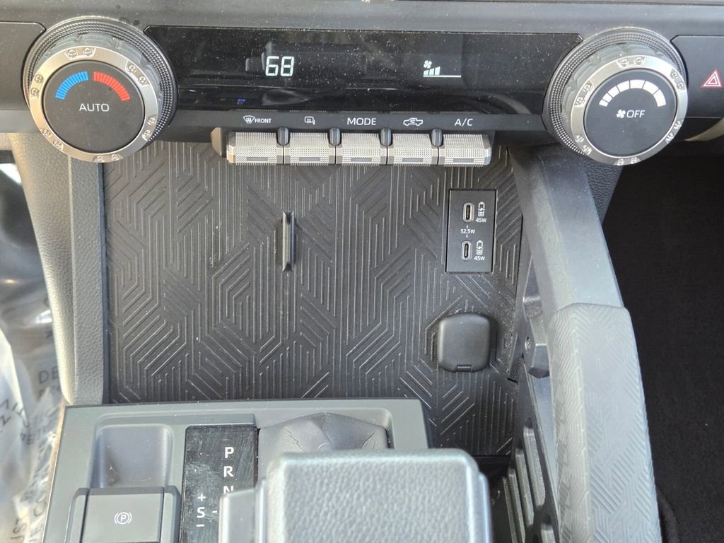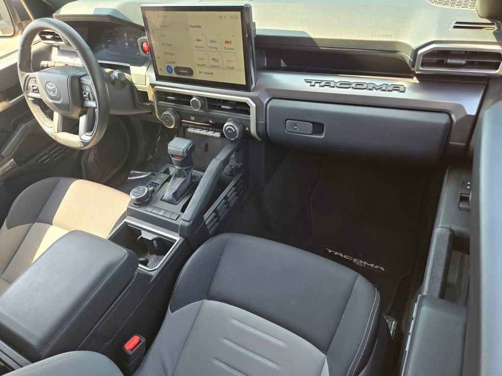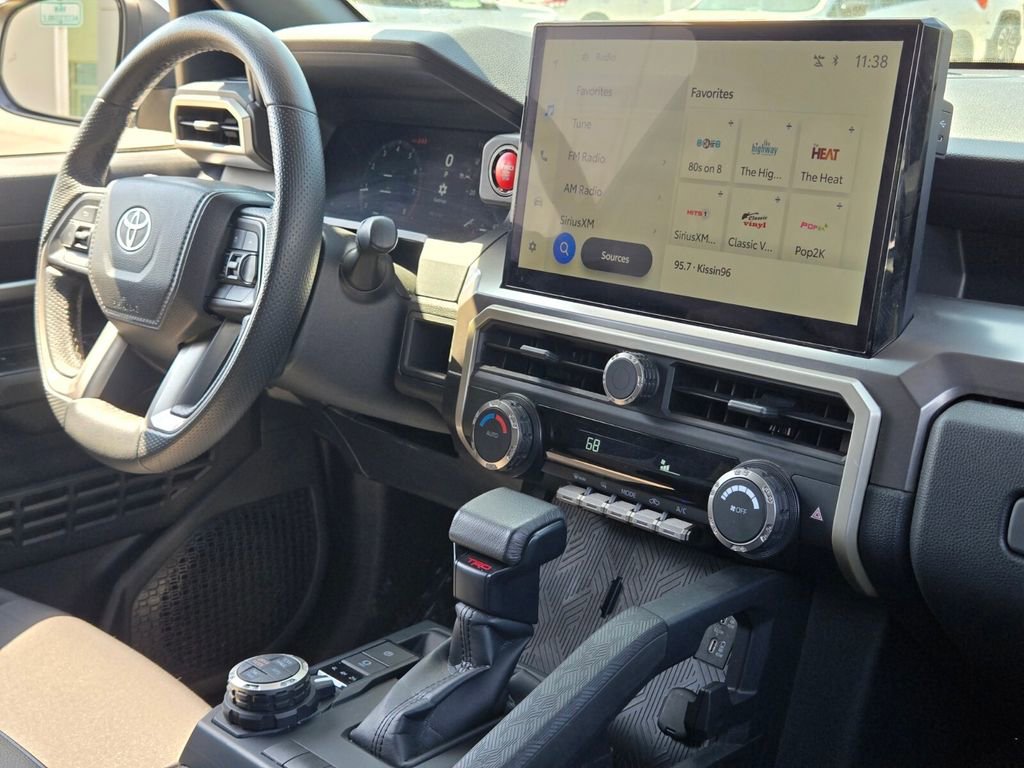 This 2025 Toyota Tacoma comes equipped with, 4WD, 3.583 Axle Ratio, 4-Wheel Disc Brakes, 6 Speakers, ABS brakes, Air Conditioning, Alloy wheels, AM/FM radio: SiriusXM, Anti-whiplash front head restraints, Apple CarPlay/Android Auto, Auto High-beam Headlights, Auto-dimming Rear-View mirror, Automatic temperature control, Brake assist, Bumpers: body-color, Driver door bin, Driver vanity mirror, Dual front impact airbags, Dual front side impact airbags, Electronic Stability Control, Emergency communication system: Safety Connect (1-year trial), Exterior Parking Camera Rear, Fabric Seat Trim, Four wheel independent suspension, Front anti-roll bar, Front Bucket Seats, Front Center Armrest, Front fog lights, Front reading lights, Fully automatic headlights, Heated door mirrors, Illuminated entry, Knee airbag, Leather Shift Knob, Leather steering wheel, Low tire pressure warning, Occupant sensing airbag, Outside temperature display, Overhead airbag, Overhead console, Panic alarm, Passenger door bin, Passenger vanity mirror, Power door mirrors, Power steering, Power windows, Radio: 8" Toyota Audio Multimedia, Radio: Premium Audio w/14" Display, Rear step bumper, Rear window defroster, Remote keyless entry, Security system, Speed control, Speed-sensing steering, Split folding rear seat, Steering wheel mounted audio controls, Tachometer, Telescoping steering wheel, Tilt steering wheel, Traction control, Trip computer, Turn signal indicator mirrors, Variably intermittent wipers, Wheels: 17" TRD Off-Road Alloy, 4WD.