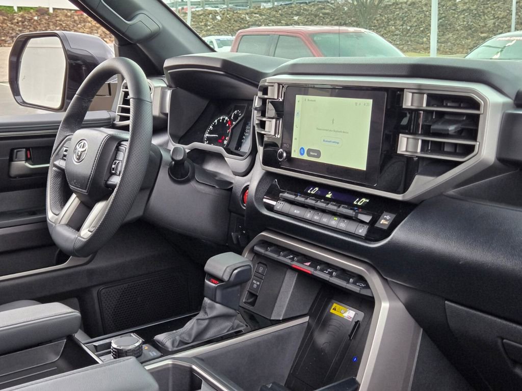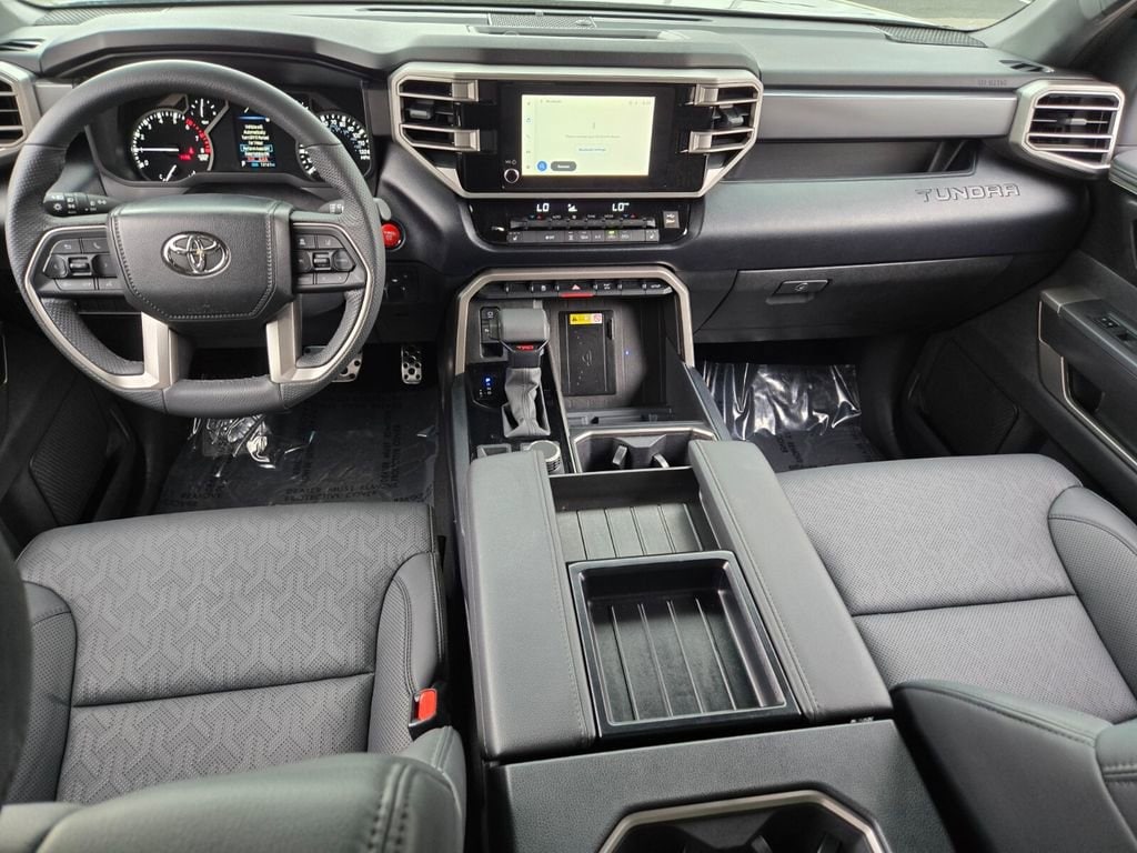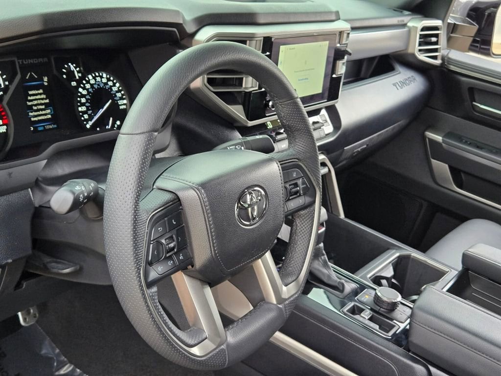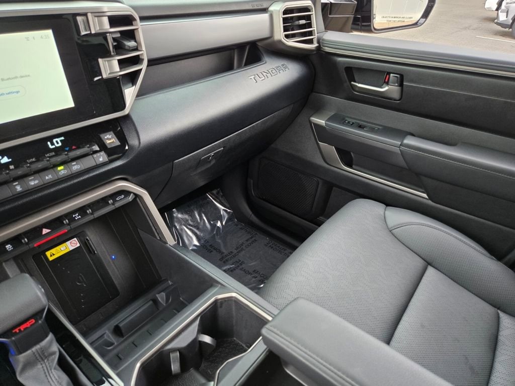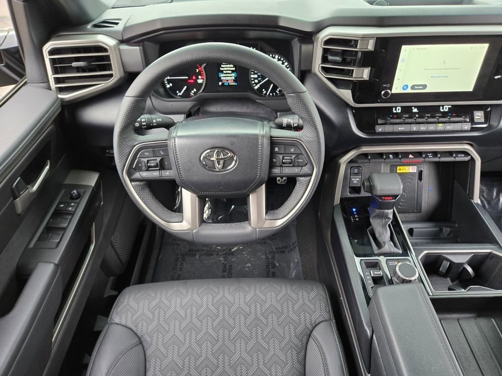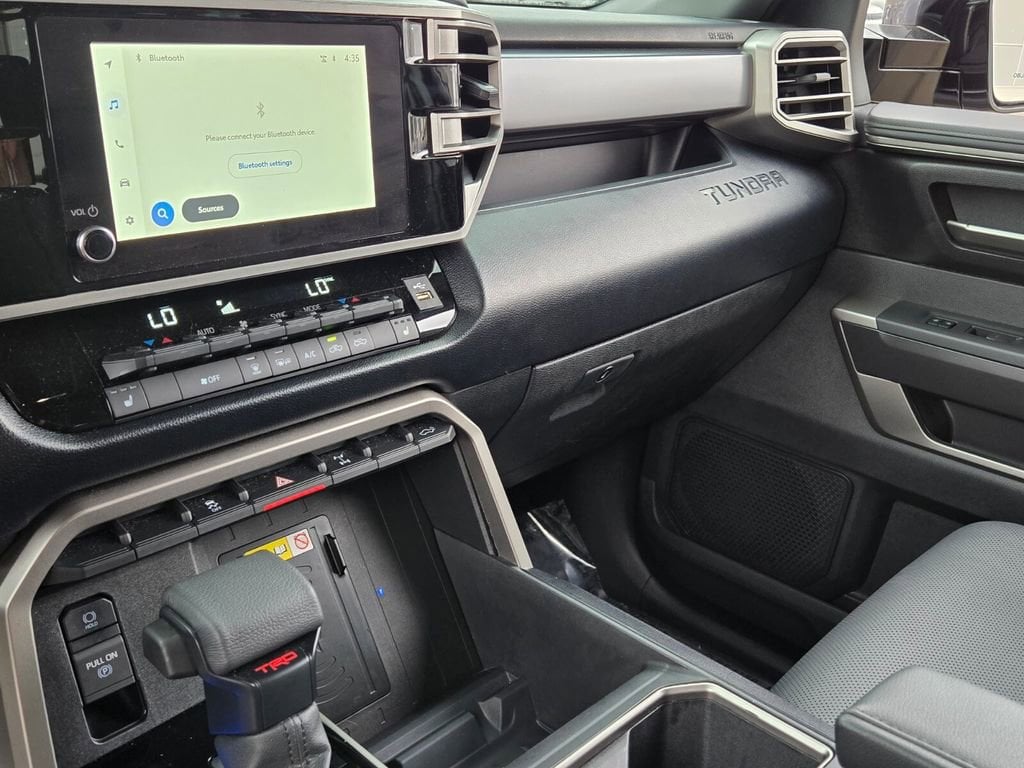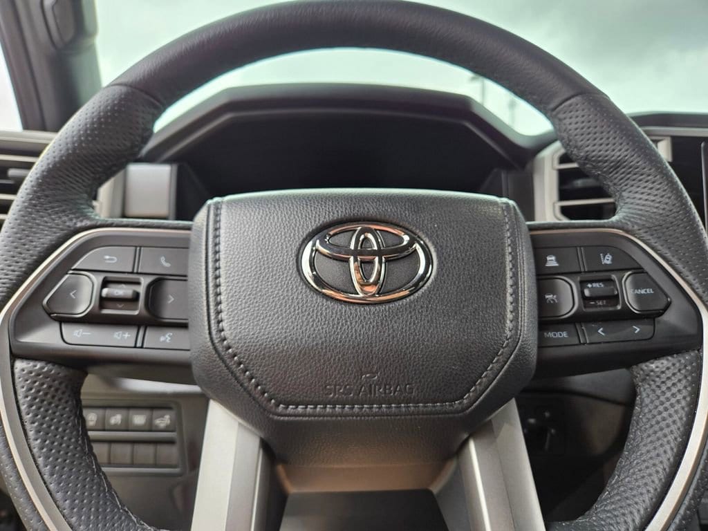 This 2025 Toyota Tundra comes equipped with, 4WD, Black Leather, 122L Fuel Tank, 18" Alloy Wheels, 3.31 Axle Ratio, 3" Lift Kit, 4-Wheel Disc Brakes, 9 Speakers, ABS brakes, Air Conditioning, Alloy wheels, AM/FM radio: SiriusXM, Apple CarPlay/Android Auto, Auto High-beam Headlights, Automatic Power Tailgate with Easy Closing, Automatic temperature control, Bed Step (TMS), Blind Spot Monitor, Blind Spot Monitor w/Lane Change Assist, Brake assist, Bumpers: body-color, Delay-off headlights, Driver door bin, Driver vanity mirror, Dual front impact airbags, Dual front side impact airbags, Electronic Stability Control, Emergency communication system: Safety Connect (10-year trial), Exterior Parking Camera Rear, Fabric Seat Trim (FB), Front & Rear Mud Guards, Front anti-roll bar, Front Bucket Seats, Front Center Armrest, Front fog lights, Front reading lights, Front Spoiler Delete, Front wheel independent suspension, Fully automatic headlights, Heated door mirrors, Illuminated entry, Knee airbag, Leather Steering Wheel, Low tire pressure warning, Occupant sensing airbag, Outside temperature display, Overhead airbag, Overhead console, Panic alarm, Parking Support Alert/Brake, Passenger door bin, Passenger vanity mirror, Power door mirrors, Power driver seat, Power steering, Power windows, Radio data system, Radio: Audio Multimedia System, Rear reading lights, Rear step bumper, Rear window defroster, Remote keyless entry, Safety Connect, Security system, SofTex Seat Trim, Speed control, Speed-sensing steering, Split folding rear seat, SR5 Convenience Package, SR5 Painted Mirror, Steering wheel mounted audio controls, Tachometer, Telescoping steering wheel, Tilt steering wheel, Traction control, TRD Off-Road Premium Package, Trip computer, Variably intermittent wipers, Voltmeter, Wheels: TRD 18" Off Road, 4WD, Black Leather. Odometer is 3022 miles below market average!