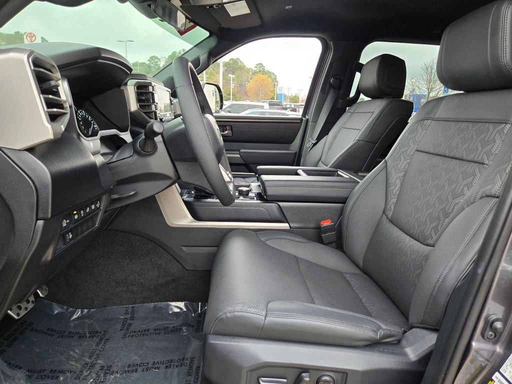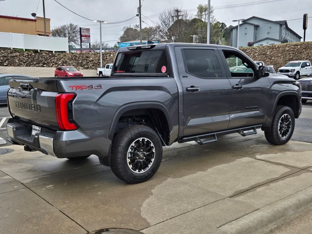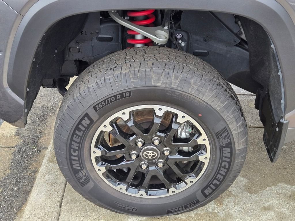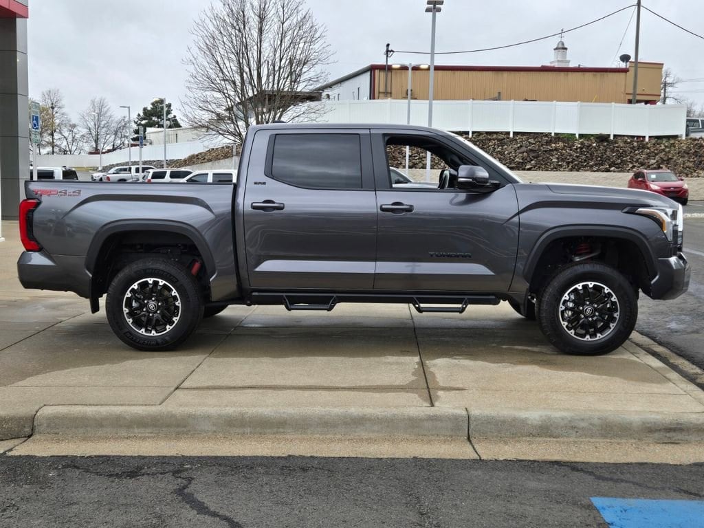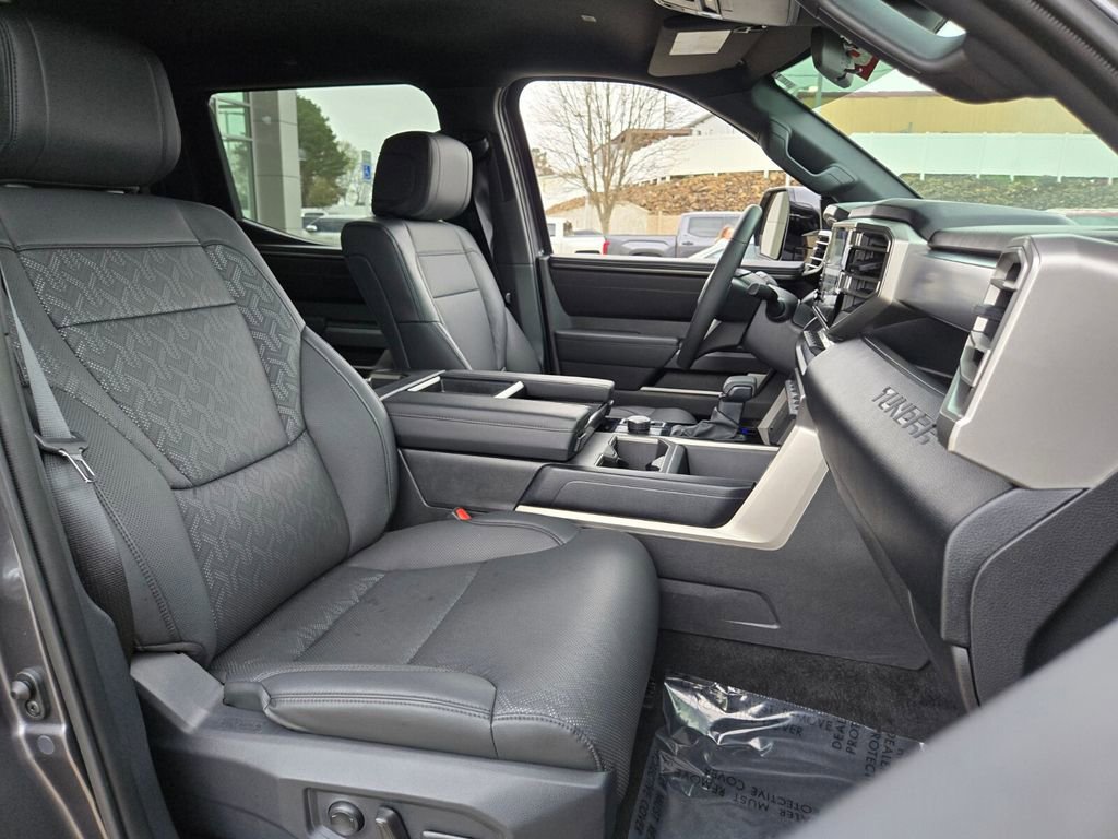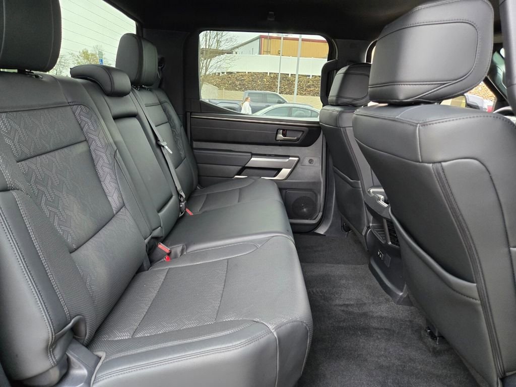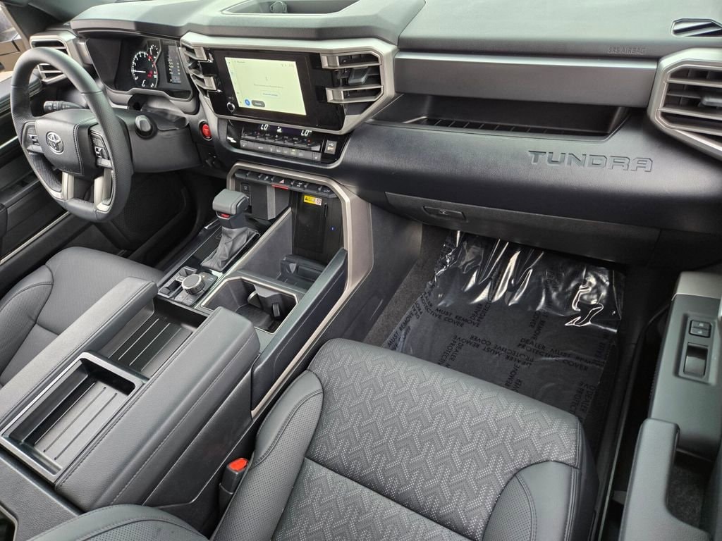This 2025 Toyota Tundra comes equipped with, 4WD, Black Leather, 122L Fuel Tank, 18" Alloy Wheels, 3.31 Axle Ratio, 3" Lift Kit, 4-Wheel Disc Brakes, 9 Speakers, ABS brakes, Air Conditioning, Alloy wheels, AM/FM radio: SiriusXM, Apple CarPlay/Android Auto, Auto High-beam Headlights, Automatic Power Tailgate with Easy Closing, Automatic temperature control, Bed Step (TMS), Blind Spot Monitor, Blind Spot Monitor w/Lane Change Assist, Brake assist, Bumpers: body-color, Delay-off headlights, Driver door bin, Driver vanity mirror, Dual front impact airbags, Dual front side impact airbags, Electronic Stability Control, Emergency communication system: Safety Connect (10-year trial), Exterior Parking Camera Rear, Fabric Seat Trim (FB), Front & Rear Mud Guards, Front anti-roll bar, Front Bucket Seats, Front Center Armrest, Front fog lights, Front reading lights, Front Spoiler Delete, Front wheel independent suspension, Fully automatic headlights, Heated door mirrors, Illuminated entry, Knee airbag, Leather Steering Wheel, Low tire pressure warning, Occupant sensing airbag, Outside temperature display, Overhead airbag, Overhead console, Panic alarm, Parking Support Alert/Brake, Passenger door bin, Passenger vanity mirror, Power door mirrors, Power driver seat, Power steering, Power windows, Radio data system, Radio: Audio Multimedia System, Rear reading lights, Rear step bumper, Rear window defroster, Remote keyless entry, Safety Connect, Security system, SofTex Seat Trim, Speed control, Speed-sensing steering, Split folding rear seat, SR5 Convenience Package, SR5 Painted Mirror, Steering wheel mounted audio controls, Tachometer, Telescoping steering wheel, Tilt steering wheel, Traction control, TRD Off-Road Premium Package, Trip computer, Variably intermittent wipers, Voltmeter, Wheels: TRD 18" Off Road, 4WD, Black Leather. Odometer is 3022 miles below market average!