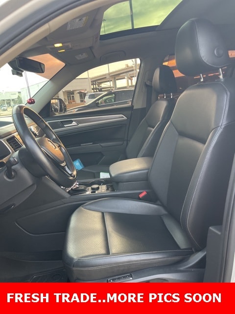 This 2019 Volkswagen Atlas comes equipped with the following features 18" 5-Spoke Wheels, 3.60 Axle Ratio, 3rd row seats: split-bench, 4-Wheel Disc Brakes, 8 Speakers, ABS brakes, Active Blind Spot Monitor, Air Conditioning, Alloy wheels, AM/FM radio: SiriusXM, Auto-dimming Rear-View mirror, Automatic temperature control, Brake assist, Bumpers: body-color, Compass, Delay-off headlights, Driver door bin, Driver vanity mirror, Dual front impact airbags, Dual front side impact airbags, Electronic Stability Control, Emergency communication system: VW Car-Net services (capabilities require enrollment or subscription), Exterior Parking Camera Rear, Forward collision: FCW w/Autonomous Emergency Braking mitigation, Four wheel independent suspension, Front anti-roll bar, Front Bucket Seats, Front Center Armrest, Front dual zone A/C, Front fog lights, Front reading lights, Garage door transmitter: HomeLink, Heated Comfort Front Bucket Seats, Heated door mirrors, Heated front seats, Heated steering wheel, Illuminated entry, Low tire pressure warning, Memory seat, Navigation System, Occupant sensing airbag, Outside temperature display, Overhead airbag, Overhead console, Panic alarm, Passenger door bin, Passenger vanity mirror, Power door mirrors, Power driver seat, Power Liftgate, Power moonroof, Power passenger seat, Power steering, Power windows, Radio data system, Radio: Discover Media 8.0" Touchscreen w/Nav, Rain sensing wipers, Rear air conditioning, Rear anti-roll bar, Rear reading lights, Rear seat center armrest, Rear window defroster, Rear window wiper, Remote CD player, Remote keyless entry, Roof rack: rails only, Security system, Speed control, Speed-sensing steering, Split folding rear seat, Spoiler, Standard Suspension, Steering wheel mounted audio controls, Tachometer, Telescoping steering wheel, Tilt steering wheel, Traction control, Trip computer, Turn signal indicator mirrors, V-Tex Leatherette Seating Surfaces, and Variably intermittent wipers. CARFAX One-Owner. 2019 Volkswagen Atlas SEL 4Motion AWD 3.6L V6