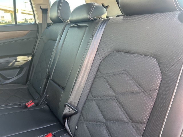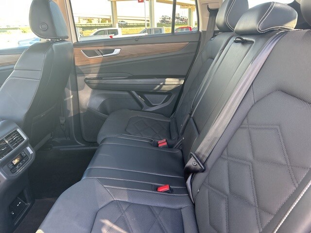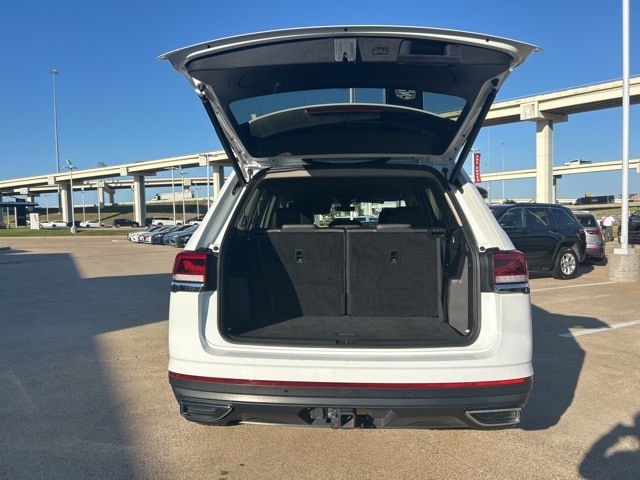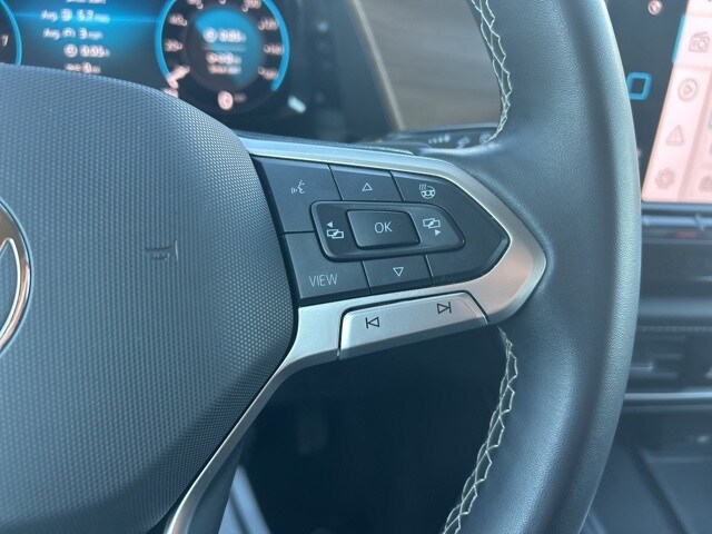 This 2024 Volkswagen Atlas comes equipped with the following features 3.60 Axle Ratio, 3rd row seats: split-bench, 4-Wheel Disc Brakes, 6 Speakers, ABS brakes, Air Conditioning, Alloy wheels, AM/FM radio: SiriusXM with 360L, Auto-dimming Rear-View mirror, Automatic temperature control, Brake assist, Bumpers: body-color, Compass, Delay-off headlights, Driver door bin, Driver vanity mirror, Dual front impact airbags, Dual front side impact airbags, Electronic Stability Control, Emergency communication system: VW Car-Net Safe & Secure 5-year, Exterior Parking Camera Rear, Four wheel independent suspension, Front anti-roll bar, Front Bucket Seats, Front Center Armrest, Front dual zone A/C, Front fog lights, Front reading lights, Fully automatic headlights, Heated door mirrors, Heated front seats, Heated steering wheel, Heated/Actively Ventilated Front Bucket Seats, Illuminated entry, Low tire pressure warning, Occupant sensing airbag, Outside temperature display, Overhead airbag, Overhead console, Panic alarm, Passenger door bin, Passenger vanity mirror, Perforated V-Tex Leatherette Seating Surfaces, Power door mirrors, Power driver seat, Power Liftgate, Power steering, Power windows, Radio data system, Radio: MIB3 Composition Media, Rain sensing wipers, Rear air conditioning, Rear anti-roll bar, Rear reading lights, Rear seat center armrest, Rear window defroster, Rear window wiper, Remote keyless entry, Security system, Speed control, Speed-sensing steering, Split folding rear seat, Spoiler, Standard Suspension, Steering wheel mounted audio controls, Tachometer, Telescoping steering wheel, Tilt steering wheel, Traction control, Trip computer, Turn signal indicator mirrors, Variably intermittent wipers, Ventilated front seats, and Wheels: 20" 2-Tone Machined Alloy. Clean CARFAX. CARFAX One-Owner. 2024 Volkswagen Atlas 2.0T SE w/Technology FWD 2.0L TSI